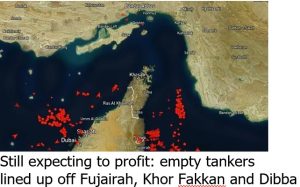 If unladen tankers give up holding off Fujairah and Oman, then it is because they assess the risk of loading from terminals on the Gulf of Oman outweighs the reward of record profits to be had from Mideast-to-Asia voyages – or, alternatively, that there is little prospect of the Straits of Hormuz being opened up in the short term. For such tankers, the commercial choice then is to sail away and to find cargoes elsewhere.