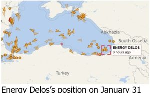 Over the weekend this route was also being used by the UK-flagged Energy Delos (IMO 9994565) and the Liberian-flagged Delta Commander (IMO 9418157), also hugging the Turkish coast even though both were traveling with AIS systems on and clearly loading Kazakh crude from the CPC terminal at Novorossiysk. Sister ship Delta Harmony (IMO 9408463) which was also not sanctioned at the time, was hit when waiting to load off Novorossiysk and damaged in a Ukrainian drone attack on January 13, so the caution of Delta Tankers’ Greek owners is understandable.
