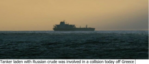 The Greek authorities are confirming reports that a tanker laden with Russian oil collided with a cargo ship this morning, December 24, in the area of the Kafireas Strait, south of Karystos. The circumstances of the incident are unclear at this time, but the reports indicate the crews were not injured, and both ships sustained minor damage.